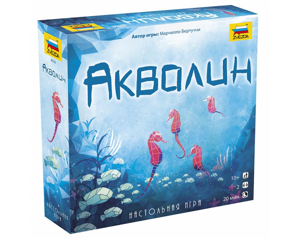 Это дуэльная игра, в которой игроки по очереди будут выбирать одну из 6 открытых фишек морских обитателей и выкладывать их на поле. Один игрок собирает стайки морских обитателей, объединённых цветом, второй – по их виду. Чем крупнее стайки, тем больше победных очков.