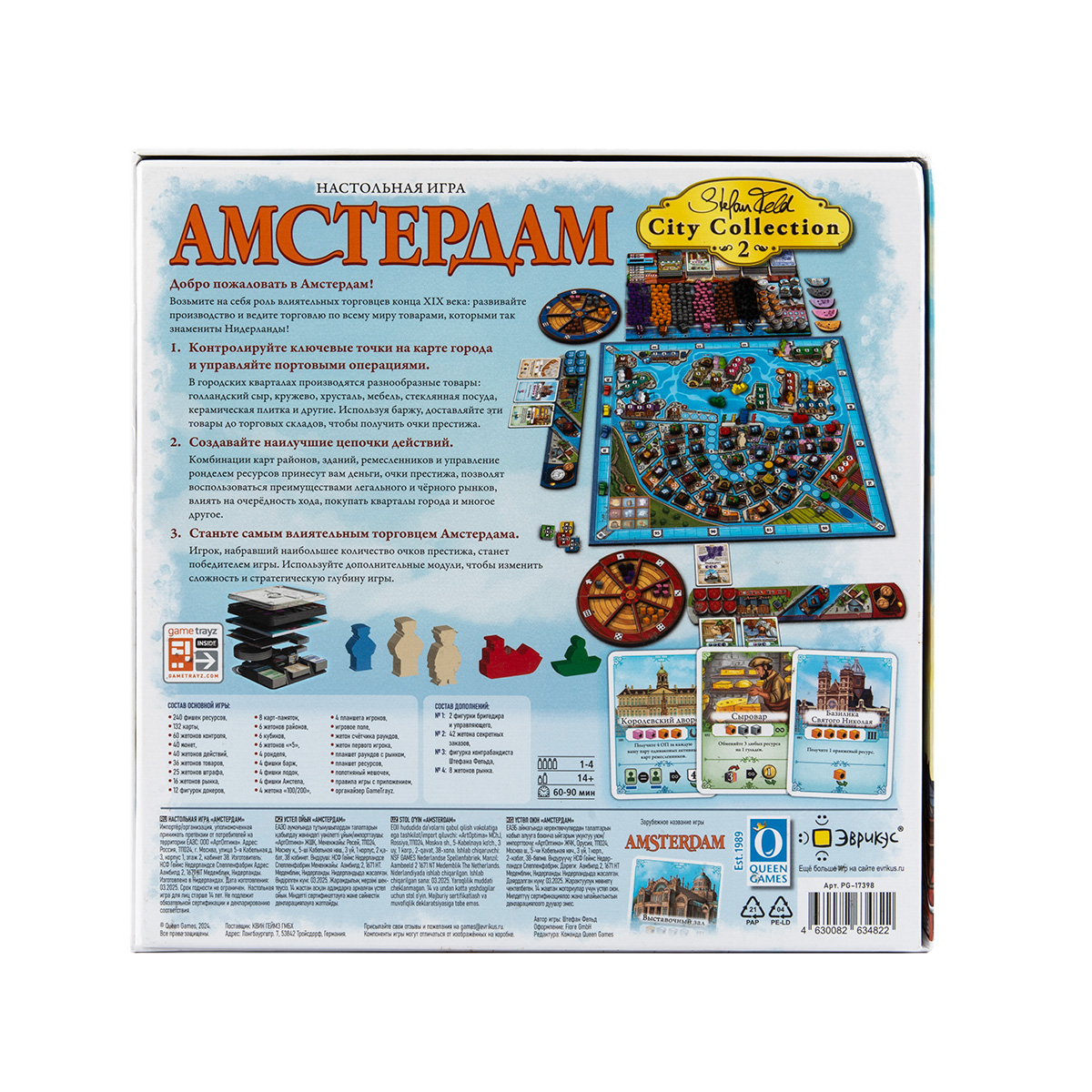 «Амстердам» — тяжёлая евро‑стратегия Штефана Фельда из серии «Городская коллекция», в которой игроки становятся торговцами в Амстердаме начала XX века. Вы будете нанимать докеров, отгружать товары, перемещать баржи по каналам, открывать новые районы и зарабатывать престиж в одном из крупнейших торговых городов Европы.​
