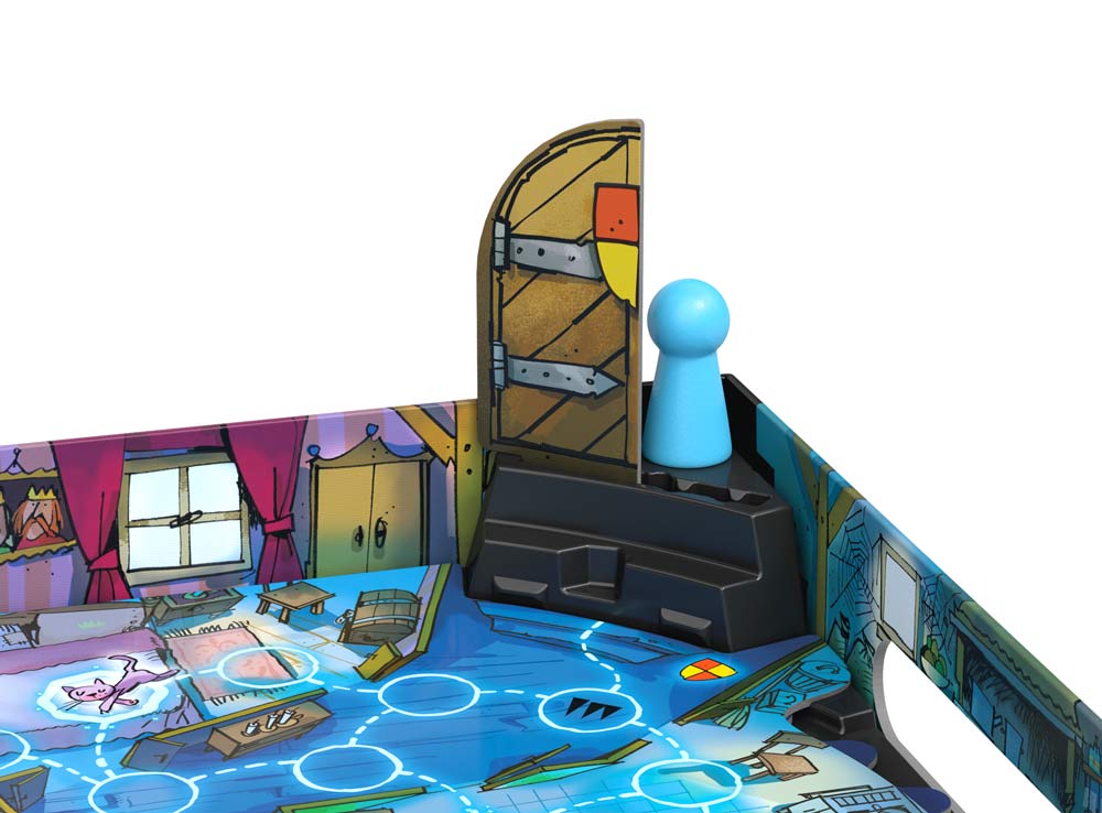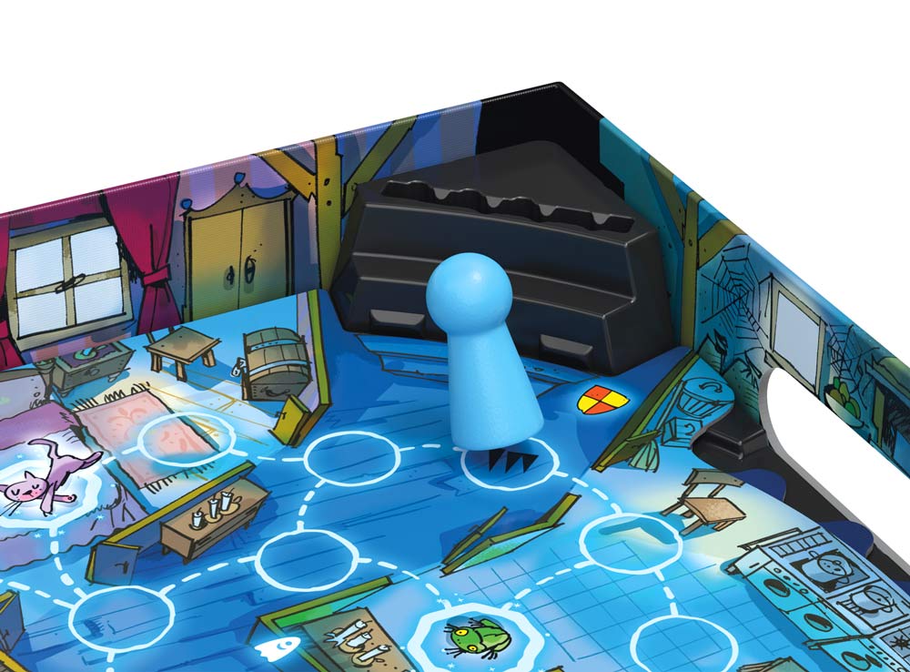• Бросайте два кубика — голубой для движения магов, кубик призраков для вращения колеса