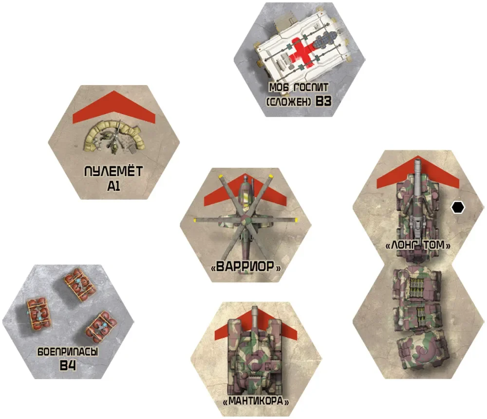 В коробку входят две двусторонние цветные карты местности и блоки жетонов, расширяющие варианты полей боя и тактических ситуаций. Карты представляют разные ландшафты, а жетоны помогают отобразить на столе укрытия, особые зоны, эффекты и другие элементы сценариев. Это делает каждую миссию визуально отличимой и добавляет глубины к привычной тактике размещения мехов и техники.