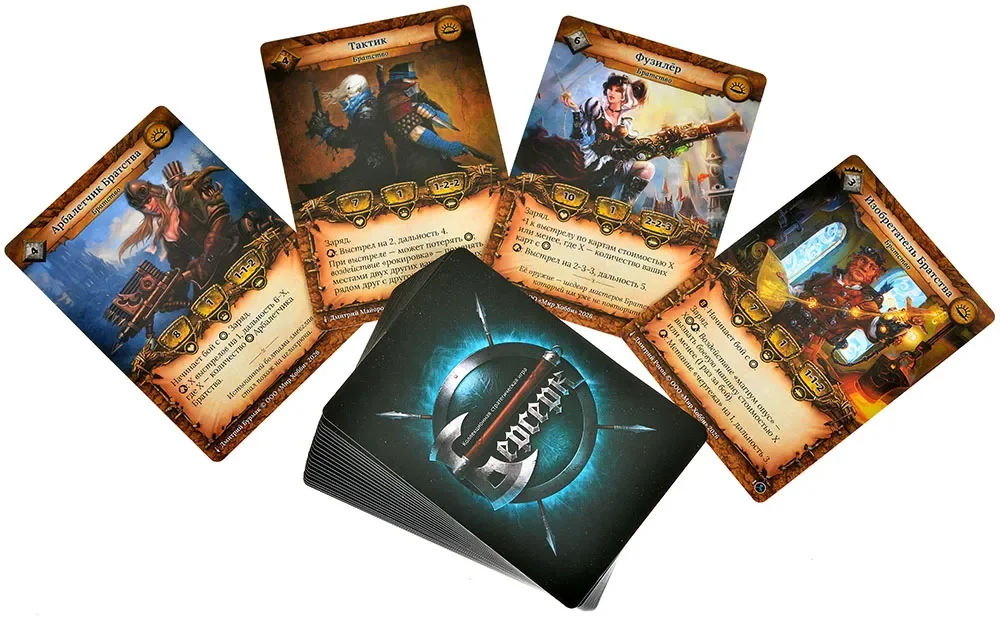 Внутри стартового набора находится полностью готовая к игре колода из 30 карт. Она сформирована так, чтобы сразу демонстрировать ключевые приёмы и особенности бернхольмского отряда — сочетание надёжных бойцов, осадных средств и карт поддержки, усиливающих ваши наступательные возможности. Никакой предварительной сборки не требуется: достаточно раскрыть колоду, перемешать и можно выходить на поле боя.