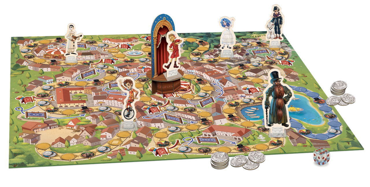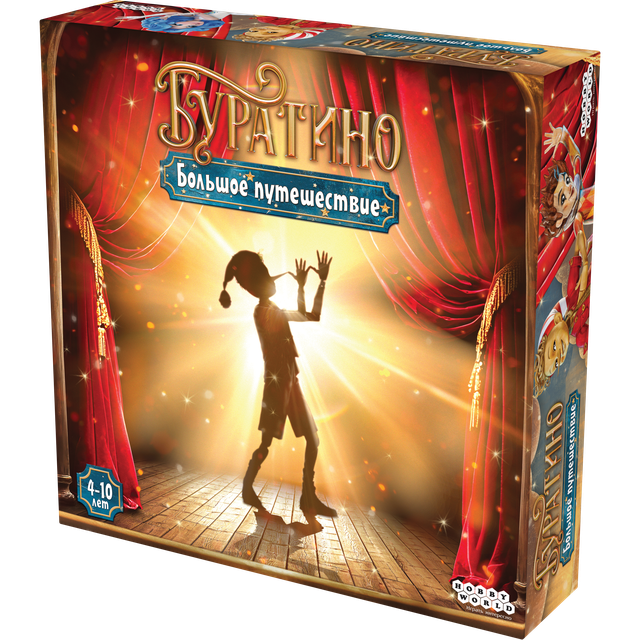 «Буратино: Большое путешествие» — яркая детская настольная игра по мотивам любимой сказки, в которой игроки помогают Буратино и его друзьям открыть собственный театр в центре города. Игрокам предстоит устроить весёлую гонку по игровому полю: бросать кубик, двигать фишки персонажей вперёд, собирать монеты и стараться обогнать не только соперников, но и коварного синьора Карабаса, который идёт по их следам.​