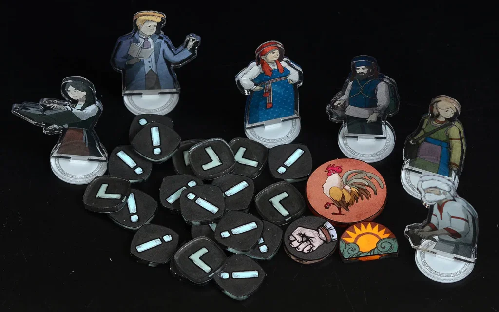Вторая крупная составляющая дополнения – набор акриловых делюкс‑жетонов, заменяющих картонные компоненты из базовой игры и дополнения «Тайны пармы». Эти элементы не меняют правил, но сильно влияют на тактильные ощущения: ключевые маркеры и ресурсы становятся более объёмными и заметными на столе, что помогает и в визуальном восприятии, и в удобстве игры. Для тех, кто уже прошёл кампанию и хочет сделать «Чёрную книгу» постоянным гостем на столе, обновление компонентов делает партии ещё более приятными.