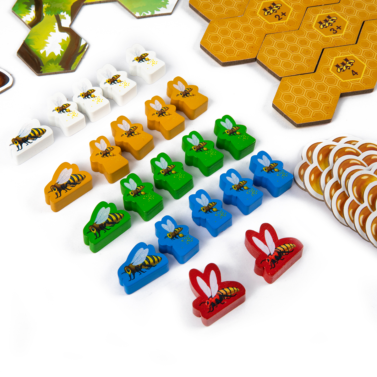 Тайлы содержат разные типы ячеек: обычные соты, места для мёда, клетки с цветами и специальные позиции для шершней. После добавления тайла игрок может разместить своих рабочих пчёл на свободных ячейках, стараясь занять клетки, которые принесут максимальное количество очков к концу партии. Важную роль играют шершни: при определённых условиях игроки могут передвигать их по улью, угрожая чужим рабочим пчёлам и мешая планам соперников.