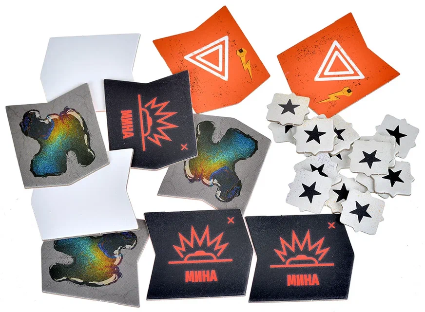 Чтобы поддержать новый уровень тактики, в комплект добавлены 15 жетонов команд и 6 жетонов опасностей для улучшений. Жетоны команд помогают отслеживать использование особых приказов главарей и эффекты, связанные с их способностями. Игроки наглядно видят, какие приёмы уже задействованы и какие ещё доступны, что упрощает управление асимметрией и предотвращает путаницу. Жетоны опасностей для улучшений вводят балансирующий элемент: мощные апгрейды могут сопровождаться рисками, делая их использование выгодным, но не безусловно безопасным.