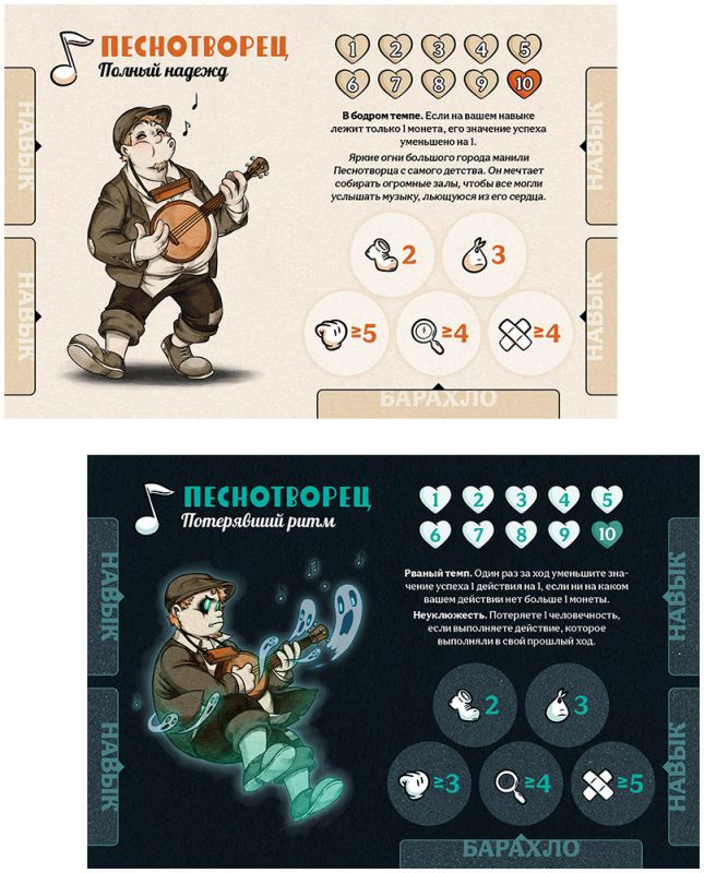 «Дорожная песня» — атмосферная кооперативная сюжетная игра, где бродяги запрыгивают в мистический товарняк "Серебряный паромщик", убегая от прошлого или следуя за мечтой. Белая перчатка помогает забраться, скрипка завораживает, но поезд полон призраков — сражайтесь, меняйте навыки, раскрывайте тайны в 20 сценариях. Выживание зависит от командной работы и смелости перед сверхъестественным. Игра для 2–4 человек от 16 лет длится от 30 минут.​