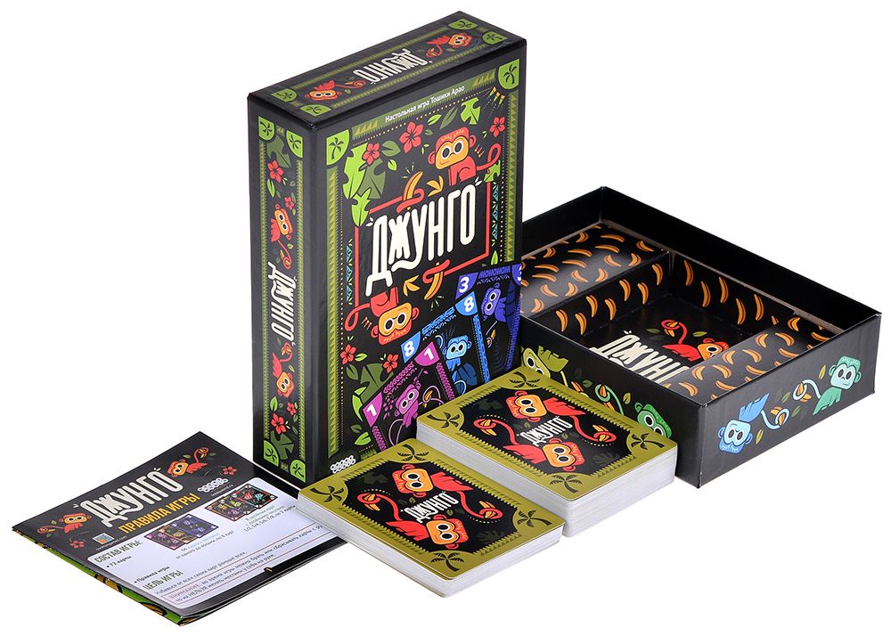 «Джунго» – динамичная карточная игра, где цель проста: первым избавиться от всех своих карт, но путь к победе требует аккуратного планирования и немного смелости. Каждый ход приходится решать, что важнее прямо сейчас – усилить руку за счёт побитых карт или сбросить их, сделав шаг ближе к победе.