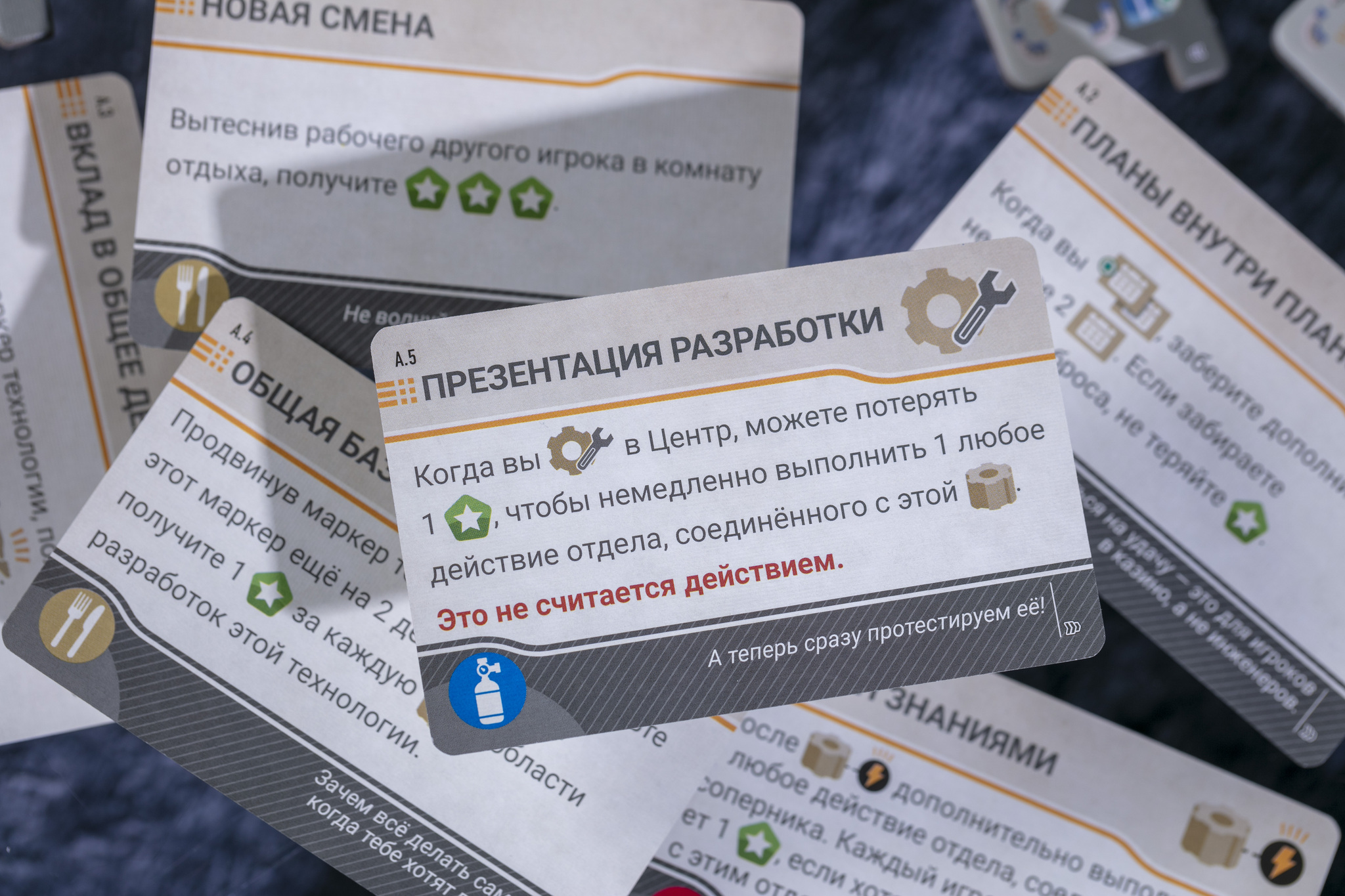 Модуль «Бонусы отделов» добавляет 6 двусторонних жетонов для отделов Центра. При третьей (или четвёртой вчетвером) фишке разработки жетон активируется. Бонус берётся рабочим в отделе и зависит от числа связанных фишек; исключение — бонусы с картой плана только при двух фишках.