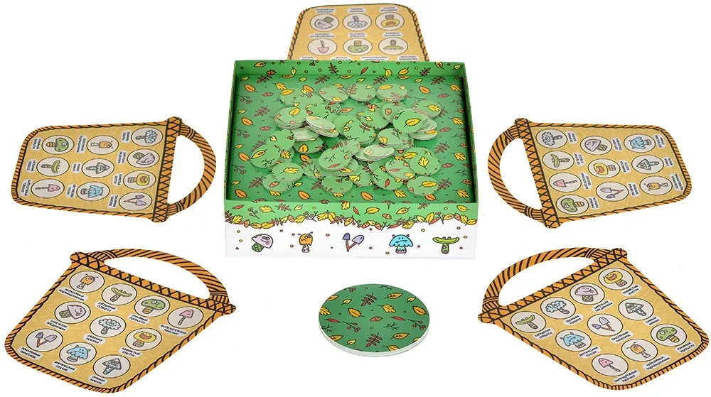 Каждый раунд начинается с «лесной загадки» — вскрывается верхняя карта задания, на которой показан гриб, за которым все охотятся в этот раз. После этого начинается самое весёлое: все игроки одновременно запускают руку в коробку, где рубашкой вверх лежат жетоны грибов, и по очереди вытягивают их, переворачивая и выкладывая перед собой. Делать это можно только одной рукой и брать жетоны по одному, что добавляет азарта и немного хаотичной суеты за столом. Как только кто‑то находит среди своих открытых жетонов искомого грибочка, он кричит «Нашёл!» — и раунд сразу же останавливается.