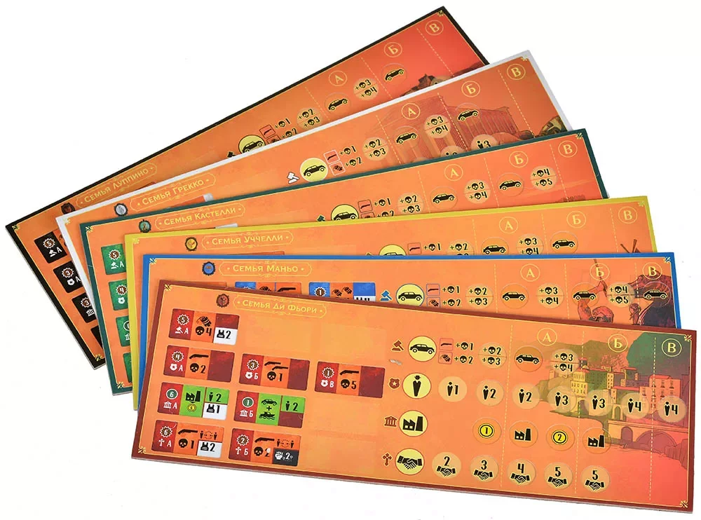 • Планшеты семей (мафиозных кланов) — 6 шт.
