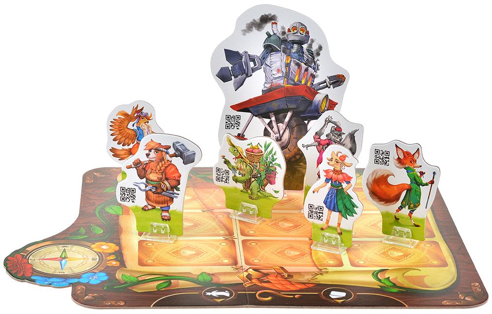 Физические компоненты делают происходящее осязаемым. 18 планшетов локаций раскладываются в разных конфигурациях, и по мере продвижения истории вы открываете новые места леса. 19 жетонов персонажей представляют зверей и волшебных существ, с которыми предстоит взаимодействовать. 40 карт предметов кладутся на специальное поле‑инвентарь, чтобы проще отслеживать, что уже найдено и что ещё может пригодиться. Это помогает детям лучше ориентироваться в «физической» части игры и не теряться только в цифровом интерфейсе.​