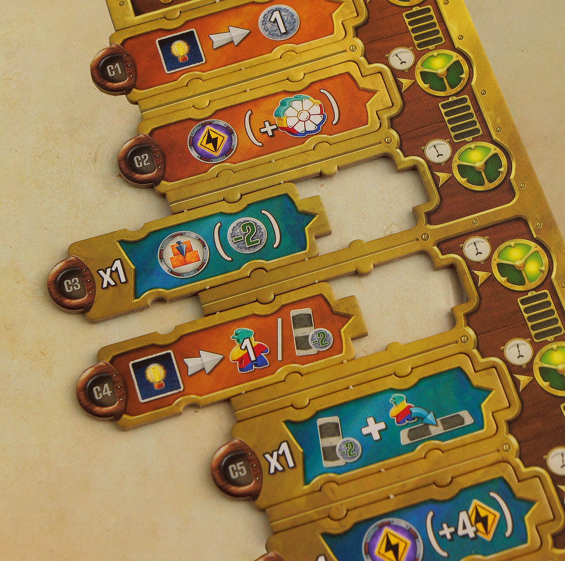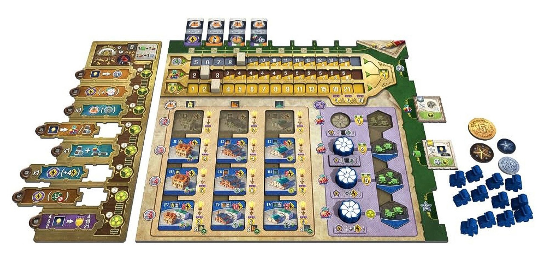 Каждый ход — стратегический выбор: строить, добывать или заряжать. Размещайте плитки действий, активируйте бонусы через цветовые совпадения и создавайте мощнейшую промышленную империю!