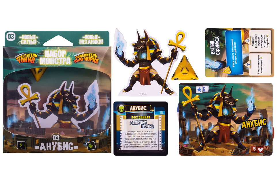 Древнеегипетский бог Анубис пришел из Подземного царства, чтобы дать другим монстрам мастер-класс по преданию городов забвению. Токио и Нью-Йорк накроет тьма египетская! Удастся ли вам избежать гнева бога смерти, пока он осыпает проклятиями несчастные мегаполисы? Возьмите в руки магический жезл, древний папирус с заклинаниями и сразите своих соперников, став Повелителем всех живых и мертвых.