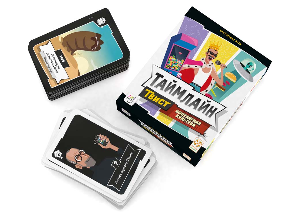 «Таймлайн Твист: Популярная культура» — весёлая игра на эрудицию, где кинолюбители восстанавливают хронологию голливудских хитов, блокбастеров и культовых фильмов. Что раньше: «Звёздные войны» или «Титаник»? Правильно разместите карты — очки ваши, ошибка — новая попытка для всех. Игра учит датам кино через соревнование для 2–8 человек от 8 лет, партии 15 минут, идеальна для киношных вечеров и поездок.
