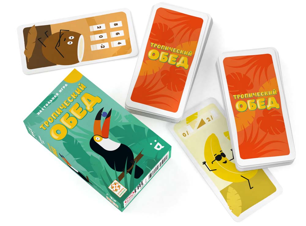«Тропический обед» — лёгкая карточная игра, где туканы в знойном лесу ищут идеальные фрукты для перекуса под пальмой. Палящее солнце заставляет быть избирательными: собирайте карты плодов в наборы, чтобы набрать максимум очков за комбинации. Продумывайте ходы, опережая соперников за сочными бананами, ананасами и манго. Игра для 2–4 человек от 6 лет длится 15 минут, идеальна для семей и путешествий.
