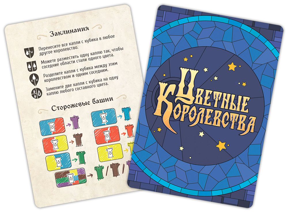 Чудовища в королевствах не только мешают, но и дают ценные возможности. Их можно победить, чтобы избавиться от угрозы и получить бонус, или попробовать приручить, превращая в полезных союзников, приносящих очки или усиливающих ваши действия. Заклинания позволяют нарушать привычные правила: менять выбранный цвет, раскрашивать дополнительные клетки, модифицировать бросок или использовать необычные способы смешивания красок.​