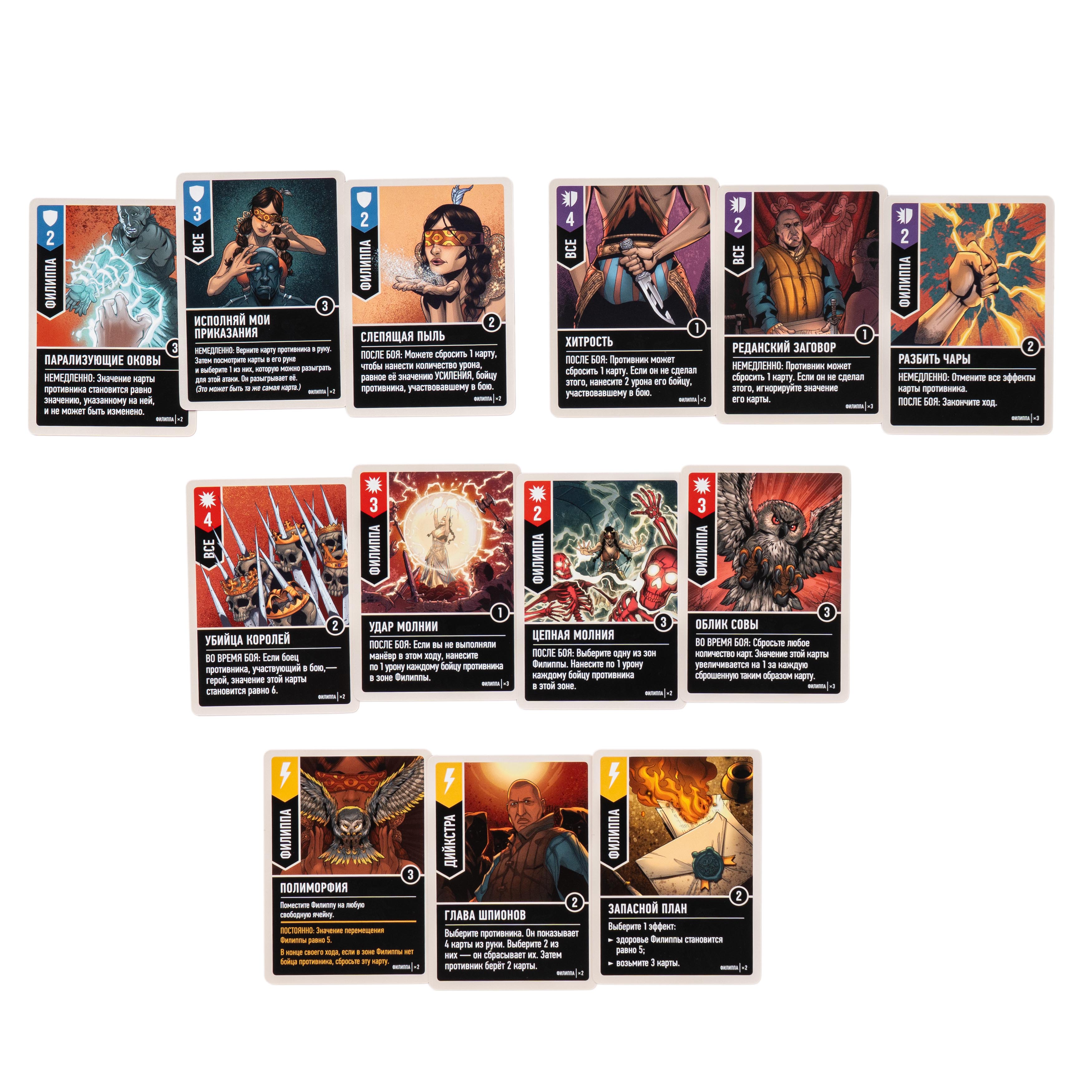 В этом наборе каждый герой обладает картами с маркером «ПОСТОЯННО». Разыграв такую карту, вы получаете долгосрочное преимущество, которое действует, пока выполняется условие. Это меняет динамику каждого раунда, требуя от игроков стратегического планирования на много ходов вперёд.