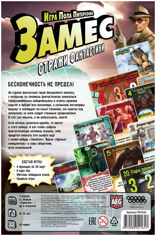 Внимание! "Замес: Стражи фантастики" – это самостоятельная игра для 2 игроков, но вы легко можете объединить её с базовой игрой "Замес" и любыми дополнениями, чтобы получить ещё больше интересных комбинаций и возможность играть большой компанией.