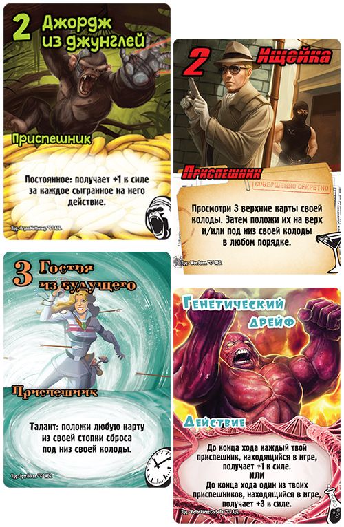 Стильные супершпионы в чёрных очках уже здесь – они следят, чтобы битва не вышла за пределы эпичности. Метаморфы воруют способности, оборотни замедляют луну, а хроноагенты переписывают правила прямо во время хода. Кто победит? Тот, кто замесит реальность под себя!