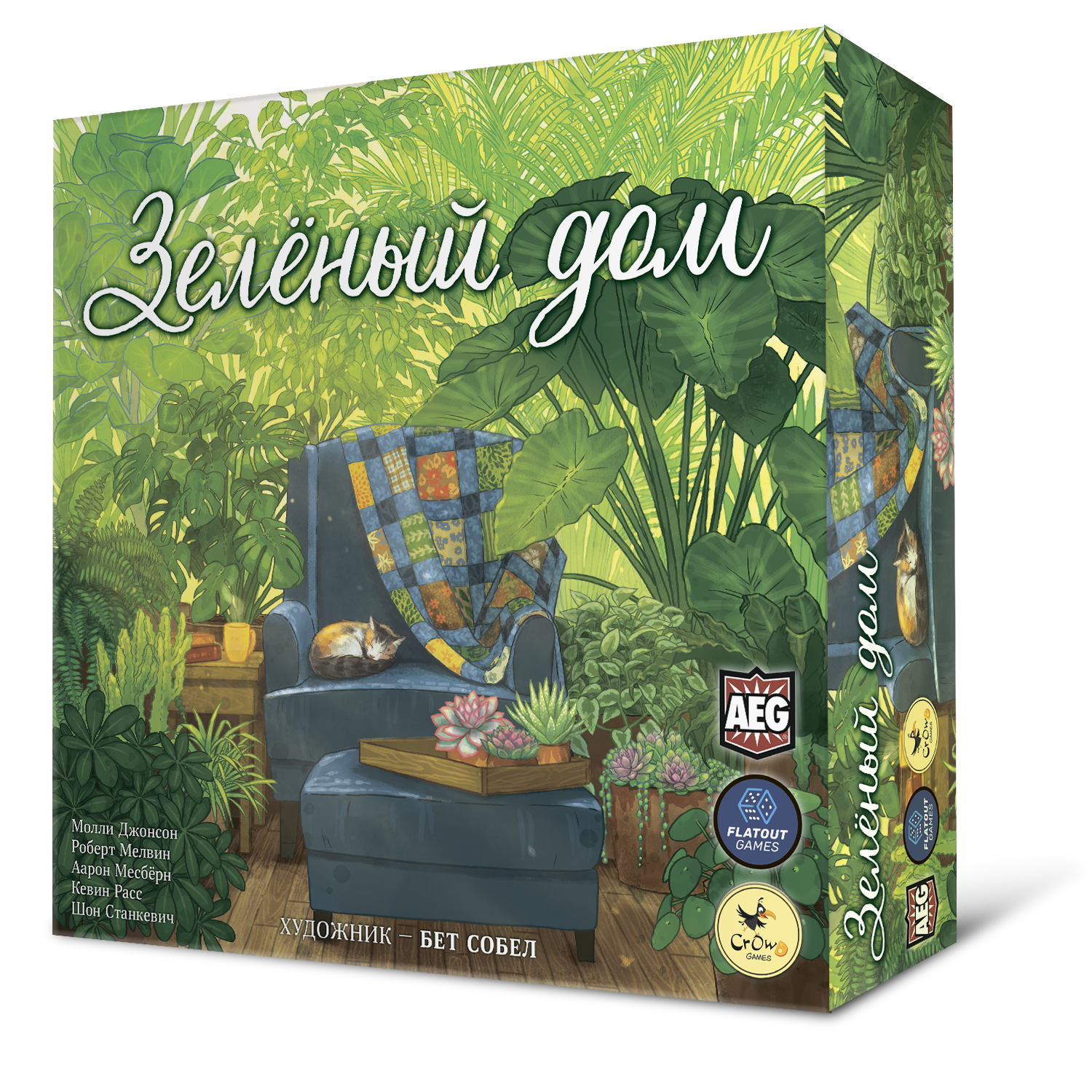 «Зелёный дом» – уютная семейная игра‑головоломка, в которой вы создаёте идеальное пространство с комнатами, комнатными растениями, домашними питомцами и любимыми предметами интерьера. За 13 ходов нужно превратить пустой план квартиры в зелёный оазис: подобрать освещение для растений, обставить комнаты мебелью и посадить цветы в лучшие горшки. Чем гармоничнее получится ваша композиция, тем больше победных очков принесёт она в конце партии.