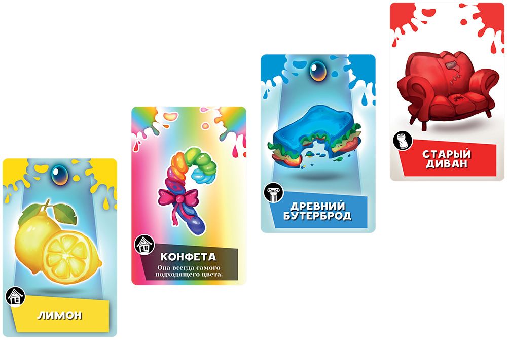 Каждая партия делится на уровни‑главы. В начале главы приложение показывает нового монстрика с определённым цветом, а игроки получают на руки набор карт‑угощений – мороженое, фрукты, игрушки и другие предметы разных цветов и оттенков. Игроки обсуждают, какие карты лучше сыграть, в каком порядке и чем можно «подкорректировать» общий цвет, но при этом нельзя раскрывать карты друг другу – только описывать словами их цвет и свойства.