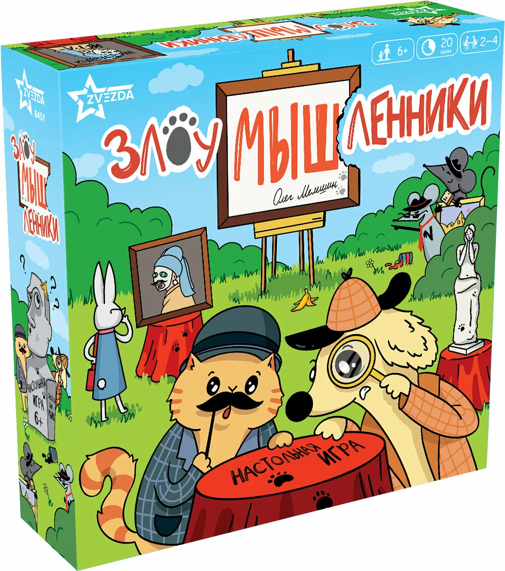 «ЗлоуМЫШленники» — весёлая кооперативная игра для детей и семей, в которой команда детективов спасает художественную выставку от коварных мышей-злоумышленников. Хитрые грызуны подменили один экспонат подделкой, и только сообща вы сможете найти фальшивку, пока не истекло время расследования. Игра сочетает механики памяти, дедукции и командной работы в компактном формате партии всего 20 минут.