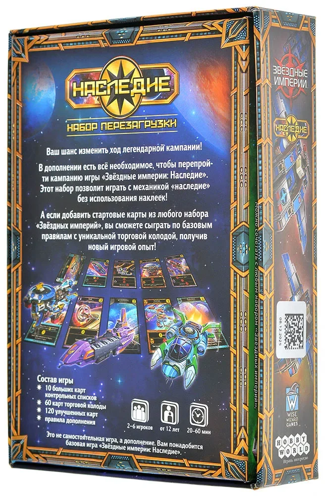 Важно: для использования набора перезагрузки требуется базовая коробка «Звёздные империи: Наследие» (Star Realms: Rise of Empire).